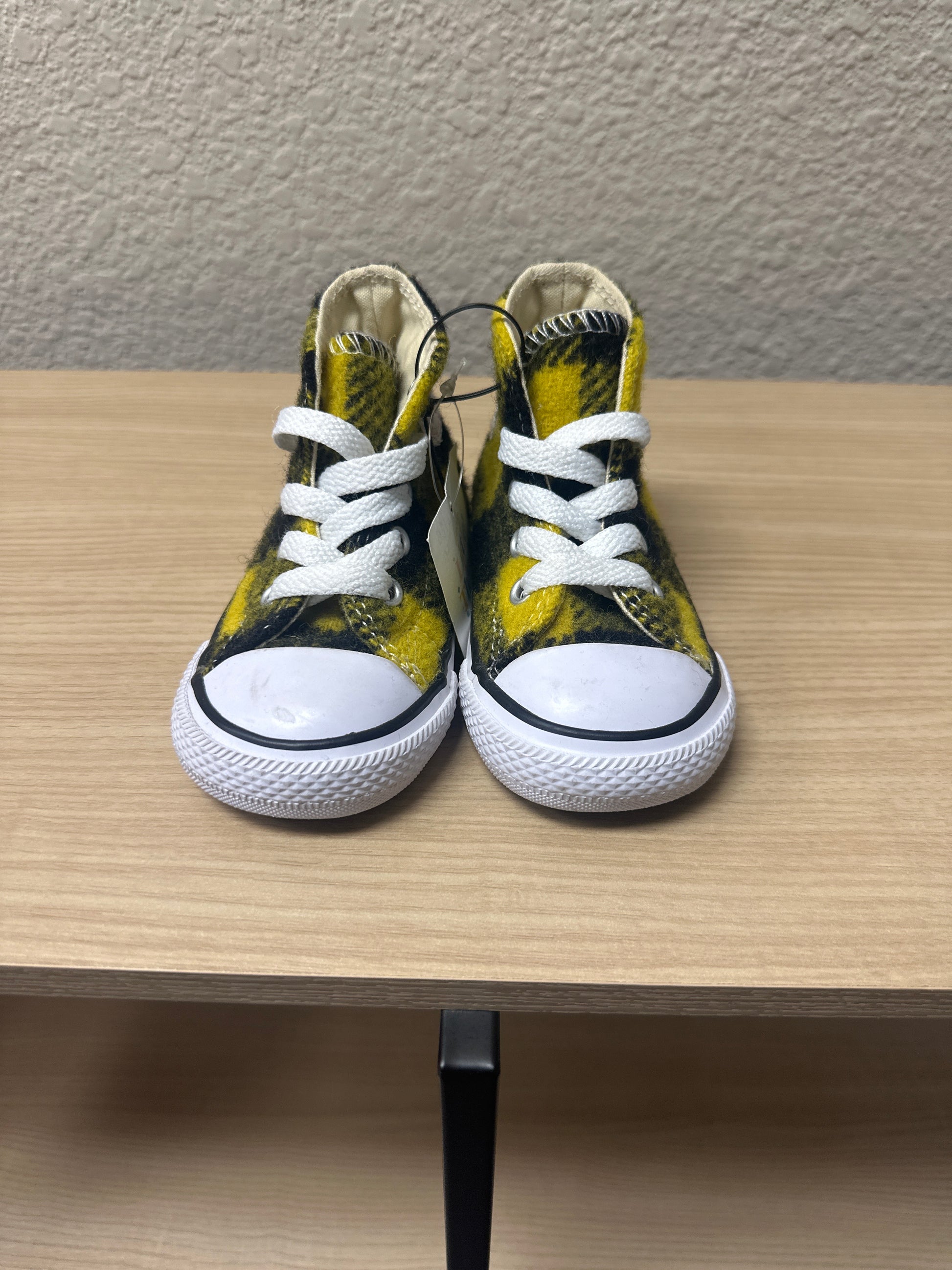 Converse Chuck Taylor All Star high-top toddler sneakers in a black and yellow plaid/flannel size 4c